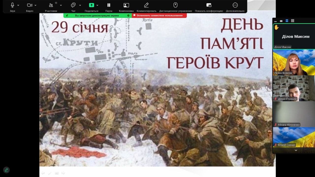 29 січня 2026 була проведена виховна година "Подвиг героїв Крут" до Дня вшанування пам'яті полеглих 1918 р. з метою формування у здобувачів освіти почуття патріотизму, любові до свого народу, його історії та героїчного минулого🇺🇦