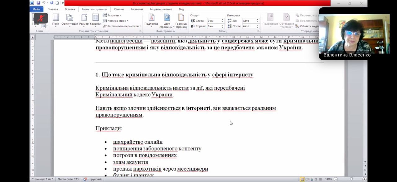 18 березня 2026 року у групі ПЗ-21, класним керівником Валентиною Власенко зі студентами проведено бесіду на тему: "Соціальні мережі та популярні месенджери". При проведенні бесіди зосереджено увагу на правовому вихованні молоді, організації дозвілля, боротьбі зі шкідливими звичками, запобігання вчинення правопорушень. Також до здобувачів освіти було доведено вимоги чинного законодавства щодо кримінальної та адміністративної відповідальності за вчинення правопорушень.