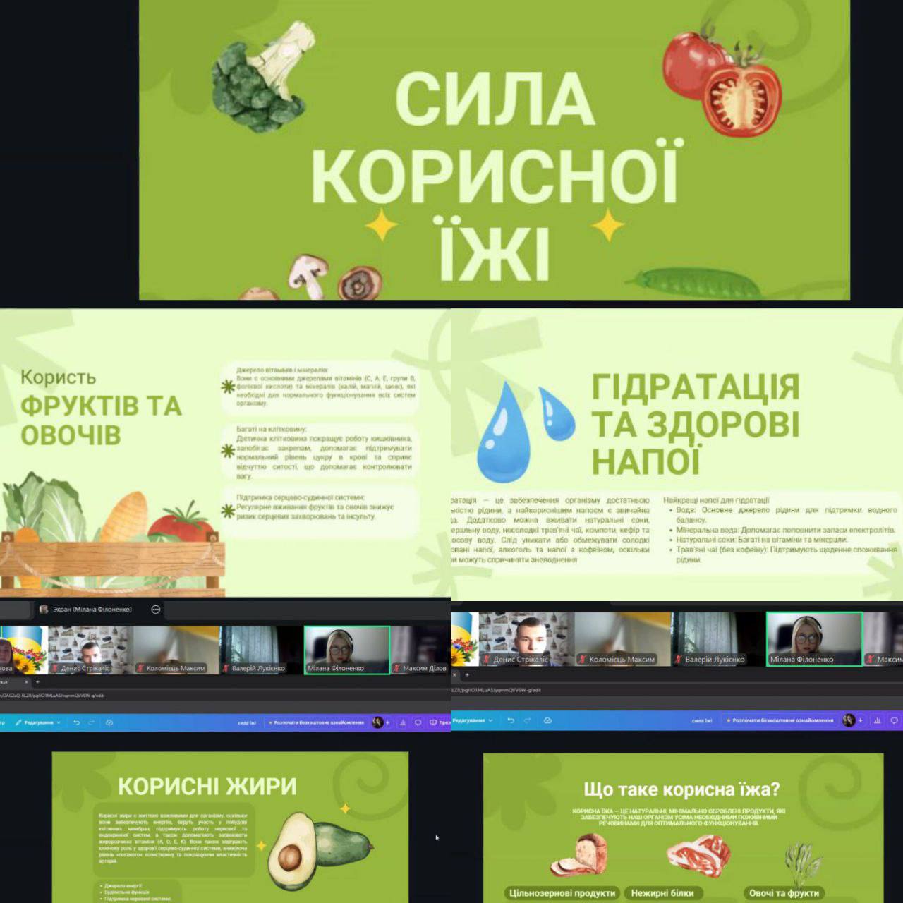 Активну роль у проведенні заходу взяли самі здобувачі освіти, підготувавши цікаві доповіді, у яких розкрили секрети правильного харчування, вживання різноманітних продуктів, які забезпечують організм поживними речовинами, необхідними для гарного самопочуття та енергії.