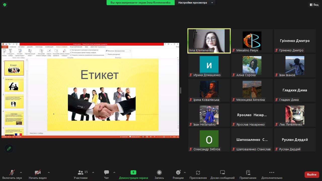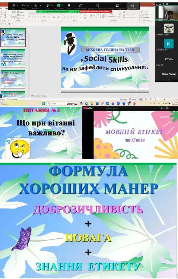 24 лютого в групах БІС-21 та ІСМ-21 під керівництвом класного керівника Кремененко І.В. відбулася виховна година, присвячена основам та правилам етикету, яка мала на меті навчити студентів правилам поведінки в суспільстві, поваги до оточуючих та основам культури спілкування, включаючи сучасний онлайн-етикет. Дотримання цих правил є основою гарного виховання та запорукою успішної комунікації в сучасному світі